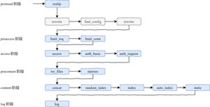 以上的这些阶段都是严格按照顺序进行处理的,当然,每个阶段中各个 HTTP 模块的处理顺序也很重要,如果某个模块不把请求向下传递,后面的模块是接收不到请求的。而且每个阶段中的模块也不一定所有都要执行一遍,下面就接着讲一下各个阶段模块之间的请求顺序。