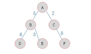 图2.1所示二叉树结点A到结点D的路径长度为2,结点A到达结点C的路径长度为1。