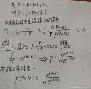 也就是说,如果我的模型是逻辑回归模型,那么事件{Y=1|X}发生的对数几率就是输入X的线性函数(模型),反之,知道了这个推论,我们是可以反推出逻辑斯蒂模型的形式的