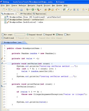大家肯定都用过Eclipse的调试的功能,在调试的过程中自然也无法避免要使用断点(breakpoint),但不知是否对Eclipse中各类断点都有所了解。本篇图文并茂地介绍了Eclipse中全部类型的断点,及其设置,希望对大家有所帮助。(2011.11.20)