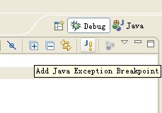 Breakpoints工具框顶右第四使用"增加Exception异常断点"