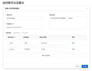 第一步:点击【创建模板】,填写模板名称、模板描述,用于区分不同小程序参数模板的用途;