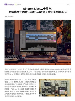回头来看,Live 的初代版本已经出现了很多 2021 宿主软件上的设计元素 — 最明显的就是 Clip 播放系统,已经被用在 Logic 等宿主软件,以及 Akai Force 这样的硬件当中。