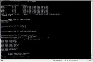 函数说明:popen()会调用fork()产生子进程,然后从子进程中调用/bin/sh -c 来执行参数command 的指令。