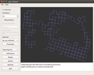 利用g2o viewer可以方便的对图进行可视化。首先是,优化之前是这样的。