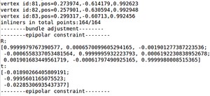 代码中同时将利用对极约束求解位姿作为对比,同时运行了基于对极几何和基于Bundle Adjustment的求解,运行部分结果如下