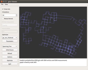 在优化之前还需要制定求解器和迭代算法。一个拥有一个,它继承自Gauss-Newton, Levernberg-Marquardt, Powell’s dogleg三者之一。同时,这个拥有一个,它含有两个部分。一个是 ,用于计算稀疏的雅可比和海塞矩阵;一个是线性方程求解器,可从PCG、CSparse、Choldmod三选一,用于求解迭代过程中最关键的一步:
