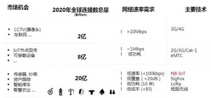 物联网顾名思义,就是各种物(设备)连入网络,而根据应用场景不同,不同设备对网络速率的要求也不同。根据专家预测,2020年将会有30亿的设备接入物联网,其中约70%的设备对网络速率的要求不高,但对覆盖范围、功耗以及成本都有较高的要求。