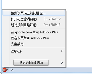 有时候您会发现 Adblock Plus 阻止了部分网站功能的正常使用, 通常这不是 Adblock Plus 本身的缺陷,而是与您所使用的过滤规则或订阅组有关。这些过滤规则引起了 Adblock Plus 的误杀。 如果在 临时禁用 Adblock Plus 后问题"消失",那说明您所使用的过滤规则有问题。 这时请通过"报告该页面上的问题"报告有问题的规则,首先它会自动收集当前页面的重要数据: