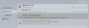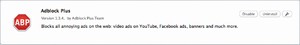 在附加组件管理器的"扩展"标签页下找到 Adblock Plus: