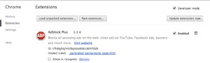 接着点击左侧屏幕的"扩展"标签页,这时会在右侧窗口显示 Google Chrome 的扩展,找到 Adblock Plus。