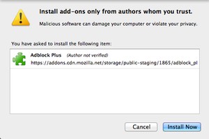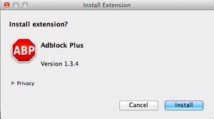 如果您使用的是 Mozilla Firefox 浏览器,请点击 Firefox 扩展页面上的安装按钮,接着 Firefox 会提示您允许安装 Adblock Plus,这时请点击"允许"。