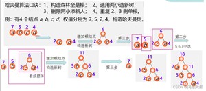 (4)重复(2)和(3),直到森林中只有一棵树为止,这棵树即为哈夫曼树。