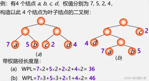 树的带权路径长度:树中所有叶子结点的带权路径长度之和。