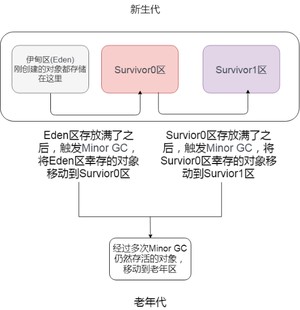 假设 Survivor0 区现在是满的,此时又触发了 Minor GC ,发现 Survivor0 区依旧是满的,存不下,此时会将 S0 区与 Eden 区的对象一起进行可达性分析,找出活跃的对象,将它复制到 S1 区并且将 S0 区域和 Eden 区的对象给清空,这样那些不可达的对象进行清除,并且将 S0 区 和 S1 区交换。