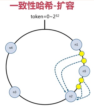 如果在n1节点和n2节点之间添加n5节点,当下次有key被hash之后的值在n1节点和n5节点之间,这些key就会被保存在n5节点上面了