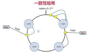 对每一个key进行hash运算,被哈希后的结果在哪个token的范围内,则按顺时针去找最近的节点,这个key将会被保存在这个节点上。
