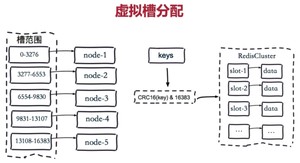 一致性哈希一般用在节点比较多的时候 - 虚拟槽位分配: