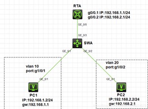 设备名 IP地址/网络掩码 网关 PC1 192.168.1.2/24 192.168.1.1 PC2 192.168.2.2/24 192.168.2.1SWA的配置信息