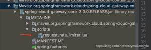 在Spring Cloud Gateway中,有Filter过滤器,因此可以在“pre”类型的Filter中自行实现上述三种过滤器。但是限流作为网关最基本的功能,Spring Cloud Gateway官方就提供了RequestRateLimiterGatewayFilterFactory这个类,适用在Redis内的通过执行Lua脚本实现了令牌桶的方式。具体实现逻辑在RequestRateLimiterGatewayFilterFactory类中,lua脚本在如下图所示的文件夹中: