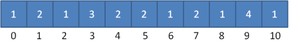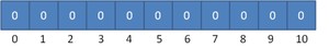 在刚才的题目里,随即整数的取值范围是从0到10,那么这些整数的值肯定是在0到10这11个数里面。于是我们可以建立一个长度为11的数组,数组下标从0到10,元素初始值全为0,如下所示: