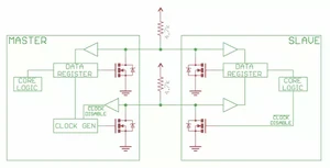 例如传感器、显示器和其他外围设备。可以将任意数量的从设本和任意数量的主设备连接到这两个信号。