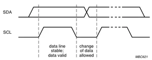 数据由主设备或从设备在串行数据线 (SDA) 上的任一方向发送。只要主机可以开始数据传输,从机就会响应主机。