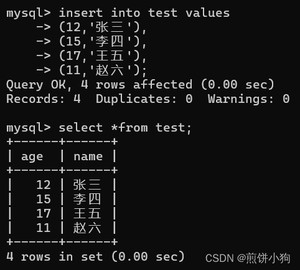 假设在一个 test(age int,name varchar(20)) 表格中插入数据,我们需要先构建一条能操作数据库的 sql 命令。