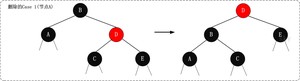 将红黑树内的某一个节点删除。需要执行的操作依次是:首先,将红黑树当作一颗二叉查找树,将该节点从二叉查找树中删除;然后,通过"旋转和重新着色"等一系列来修正该树,使之重新成为一棵红黑树。详细描述如下: