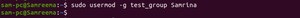例如,我们的系统上存在“sam-pc”,我们希望将该用户添加到“test_group”组中。为此,请将上述命令更改为以下形式: