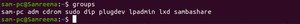 正如您在上面的输出中可以观察到的,用户属于不同的组。在这里,用户的主要组是“users”,它也是其他补充组“sudo、sam-pc 和 sambashare”的成员,如上面的屏幕截图所示。