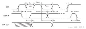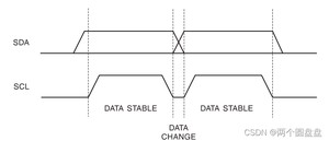 IIC进行传输时,数据data的改变必须在SCL信号为低电平时进行,在SCL为高电平时保持稳定,此时认为在SCL为高电平时的数据有效,其时序如下图所示