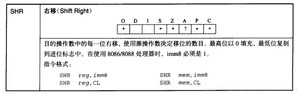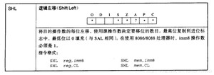 SHL逻辑移位指令在执行时,实际上把操作数看成无符号数进行移位,所有位顺序左移,最高位移入CF。