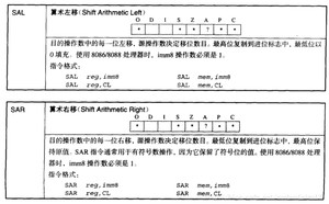 SAL算术移位指令在执行时,实际上把操作数看成有符号数进行移位,最高位符号位移入CF,但本身保持原值;其余位顺序左移,次高位被舍弃。