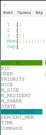 例如,要按 PERCENT_MEM 列(已用内存百分比)对进程进行排序: