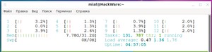 在最顶部,显示了中央处理器每个内核的负载(数字从 1 到 12)。