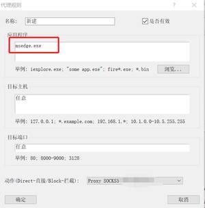 然后我们就可以在配置文件-代理规则中选择我们的任意程序进行代理,这里我选择了我自己的一个浏览器展示下结果。