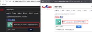 对比下正常浏览器访问获取到的ip(左侧)与阿里云ss5代理访问获取到的ip(右侧)。