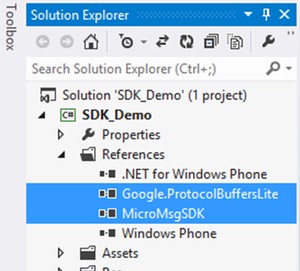 [3] 引入 SDK 的 dll 后,在 References 下可以看到引入的 dll 库。(如下图所示)。