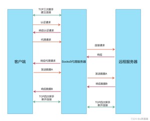 Socks5协议是一款广泛使用的代理协议,它在使用TCP/IP协议通讯的客户端和服务器之间扮演一个中介角色,使得内部网中的客户端变得能够访问Internet网中的服务器,或者使C/S(Client和Server)之间的通讯更加安全。SOCKS5 代理服务器通过将客户端发来的请求转发给真正的目标服务器, 模拟了一个客户端请求操作。在这里,客户端和SOCKS5代理服务器之间也是通过TCP/IP协议进行通讯,客户端将原本要发送给真正服务器的请求先发送给SOCKS5服务器,然后SOCKS5服务器再将请求转发给真正的服务器。Socks5代理工作流程如下图所示: