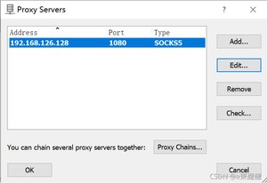 2.点击proxy servers ->Add ->填入服务器IP和商品,选择sock5协议,不选择身份验证;