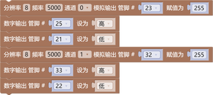 在本例中,我们在通道 0 上生成 8 位分辨率的 30000 Hz 信号。我们从 200 的占空比开始(您可以设置 0 到 255 之间的占空比值)。