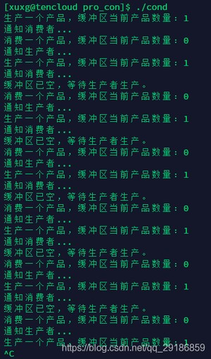 之前用互斥量解决生产者消费者问题时,并没有考虑这一点。现在有了条件变量就可以解决这个问题了。程序如下: