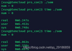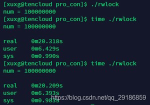 执行的时候会明显感觉到很慢,特意用time命令测试了下,上述程序需要近4秒钟才可以执行完。所以加锁会带来性能的损耗。