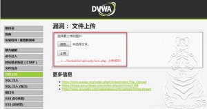 这里我们借助 靶机:DVWA 其中的 文件上传漏洞( low 级别) 做实验。来解释冰蝎的使用方法。