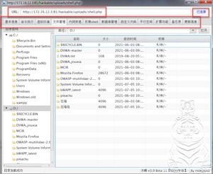 ① 将 冰蝎 中存在的 shell 脚本 上传到网站上。点击 浏览 选择 :shell.php 然后上传 并且复制上传路径。