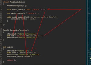 其中有一个重要的关键字--co_await, 这是一个一元操作符,操作的对象为awaitable类型,就是实现await_ready(), await_resume(), await_suspend( ) 的类型,如例子所示的AWaitableObject