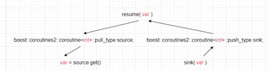 boost.corountine2中的协程增加了和用于提供协程数据的流转,约束了数据的从流入,从流出, 上面的demo定义协程对象source的时候使用了,所以协程函数参数类型是