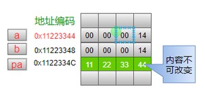 但是,指针变量p所指向的那个变量a的值是可以改变的,即:这个语句是合法的,因为指针p的值没有改变(仍然是变量c的地址0x),改变的是变量c中存储的值。