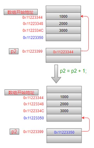 思考一下,如果对这里的p2指针执行操作,p2中的值将会增加多少?